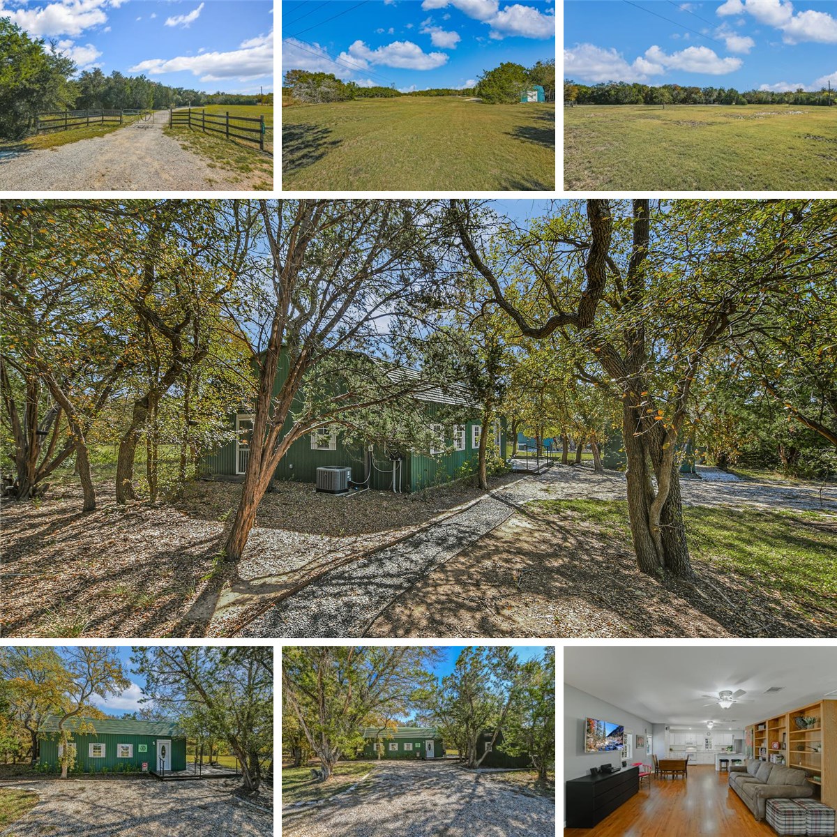 Tucked away on 5 Acres, you will find this lovely 2 bedroom. 1 bath home perfect for gatherings big or small. Could be a great weekend get away or your little oasis to sit under the stars away from the city lights. Plumbed for stackable washer/dryer. Open floorplan with breakfast island is perfect for serving up a crowd or sitting at and having dinner. Three outdoor sheds, 2 of the sheds/workshops have electricity perfect for all your hobbies and woodwork projects. Property is fully fenced so bring your horses.