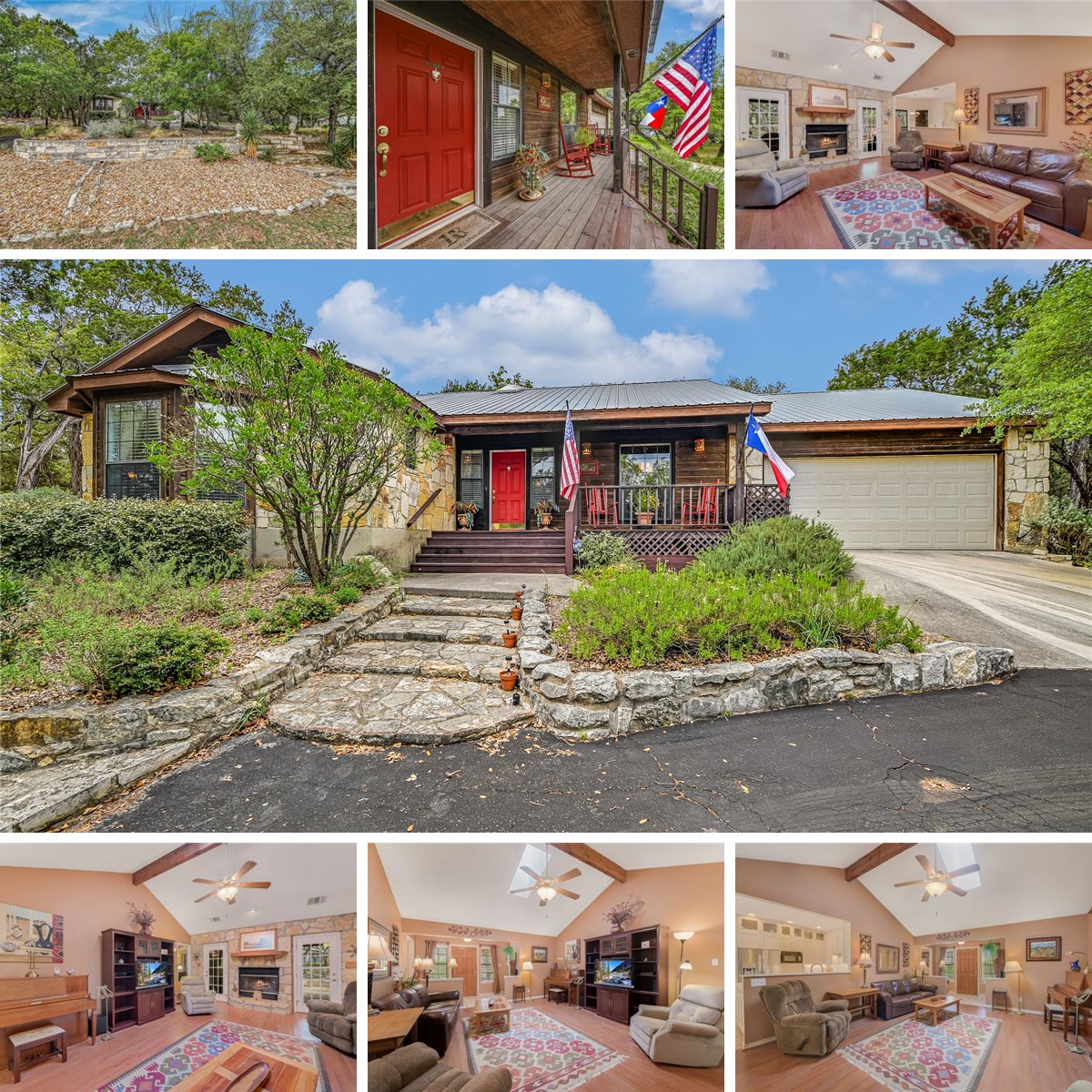 - Gas-log fireplace set within a floor-to-ceiling rock wall