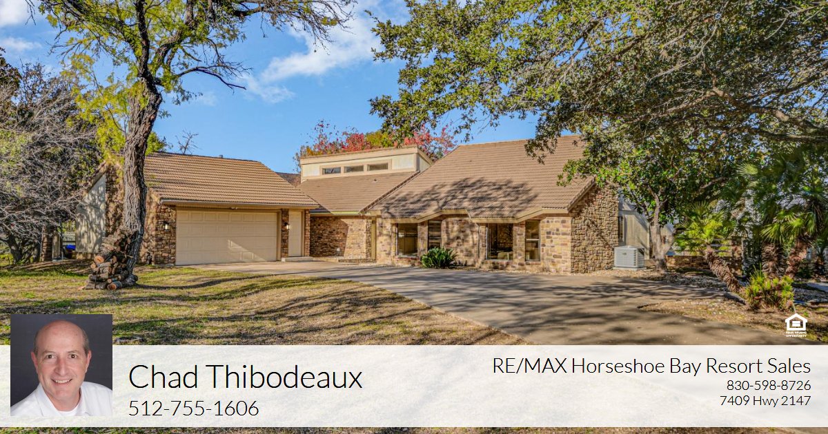 Relax and enjoy effortless lakeside living in this single-story waterfront home offering 77 feet of Northeast-facing shoreline on a protected channel. Tucked away on a quiet cul-de-sac in the core area of Horseshoe Bay, the property enjoys convenient access to resort amenities including the marina, fitness center and Yacht Club. Thoughtfully designed for comfort and entertaining, the open floor plan features vaulted ceilings, exposed beams, luxury vinyl plank flooring, a masonry fireplace, a wall of windows and beautiful lake views. The kitchen is an entertainer’s delight with custom cabinetry, granite countertops, breakfast bar, pantry and a full suite of modern appliances. The lakeside primary suite offers vaulted ceilings and tranquil water views, while the primary bath features dual sinks, a tiled shower and two walk-in closets. Two spacious guest bedrooms share a well-appointed hall bath, and a versatile lakeside bonus room works perfectly as a game room, office or optional fourth bedroom. Outdoor living shines with a refreshing pool, covered pergola, multiple seating areas, majestic shade trees and a beautifully fenced yard. Additional features include a detached two-car garage, tile roof, retaining wall, lake pump, sprinkler system, dual Jet-Ski ramps, boathouse with hydraulic lift and easy access to open water. Short-term rental friendly and sold furnished with exceptions, this property is both an outstanding investment and a perfect setting for unforgettable memories. Schedule your showing today.