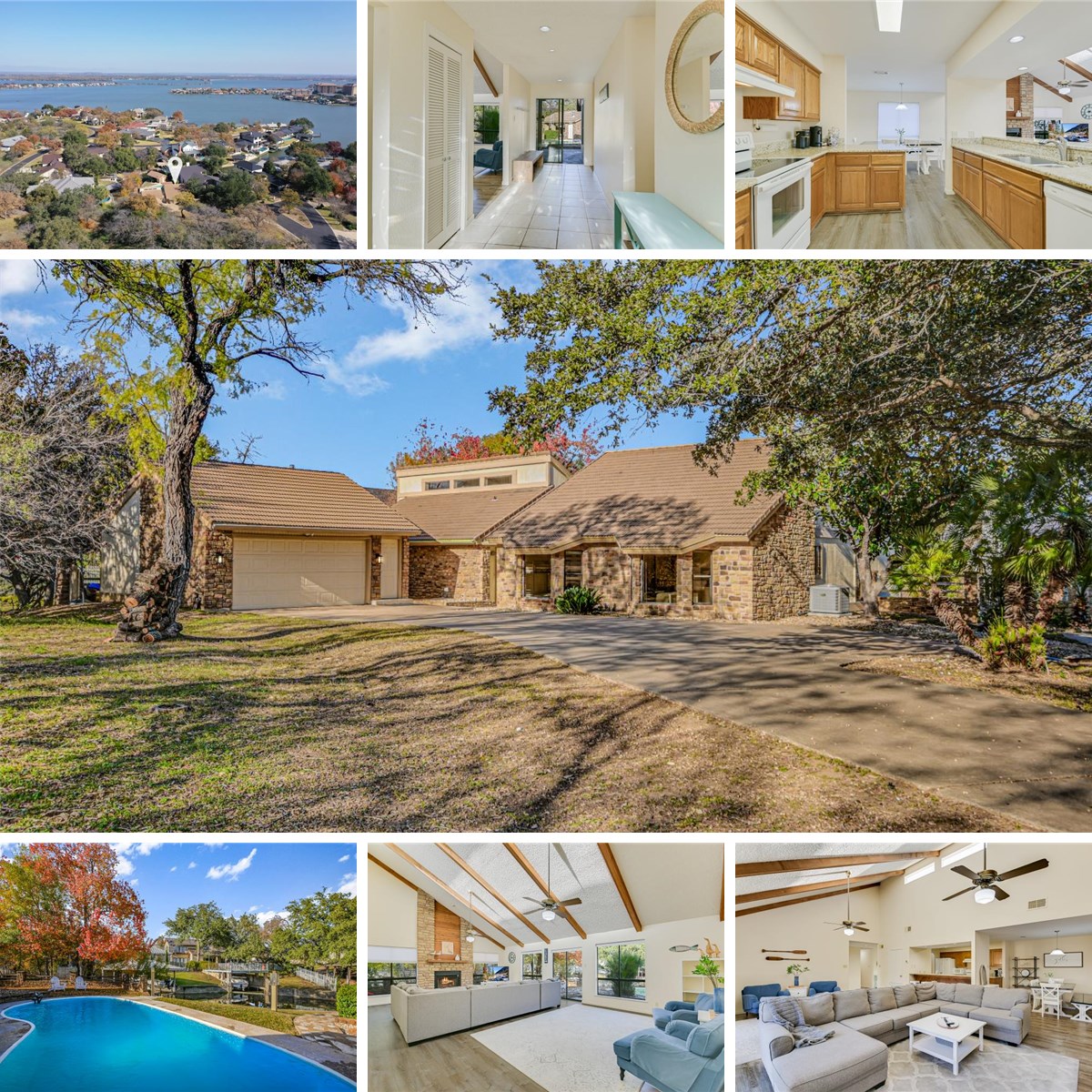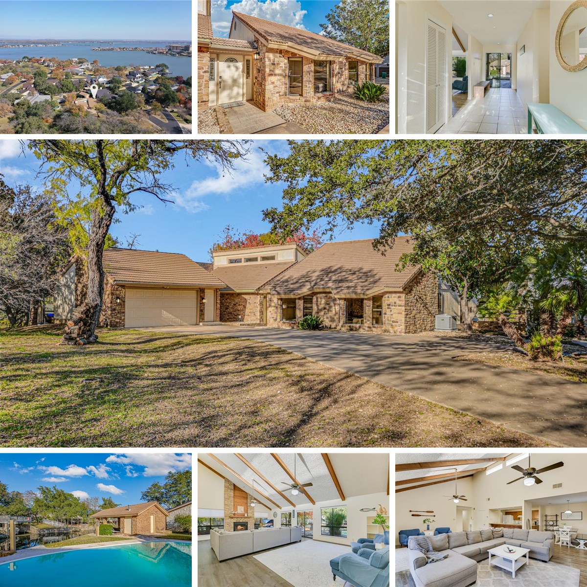 Relax and enjoy effortless lakeside living in this single-story waterfront home offering 77 feet of Northeast-facing shoreline on a protected channel. Tucked away on a quiet cul-de-sac in the core area of Horseshoe Bay, the property enjoys convenient access to resort amenities including the marina, fitness center and Yacht Club. Thoughtfully designed for comfort and entertaining, the open floor plan features vaulted ceilings, exposed beams, luxury vinyl plank flooring, a masonry fireplace, a wall of windows and beautiful lake views. The kitchen is an entertainer’s delight with custom cabinetry, granite countertops, breakfast bar, pantry and a full suite of modern appliances. The lakeside primary suite offers vaulted ceilings and tranquil water views, while the primary bath features dual sinks, a tiled shower and two walk-in closets. Two spacious guest bedrooms share a well-appointed hall bath, and a versatile lakeside bonus room works perfectly as a game room, office or optional fourth bedroom. Outdoor living shines with a refreshing pool, covered pergola, multiple seating areas, majestic shade trees and a beautifully fenced yard. Additional features include a detached two-car garage, tile roof, retaining wall, lake pump, sprinkler system, dual Jet-Ski ramps, boathouse with hydraulic lift and easy access to open water. Short-term rental friendly and sold furnished with exceptions, this property is both an outstanding investment and a perfect setting for unforgettable memories. Schedule your showing today.