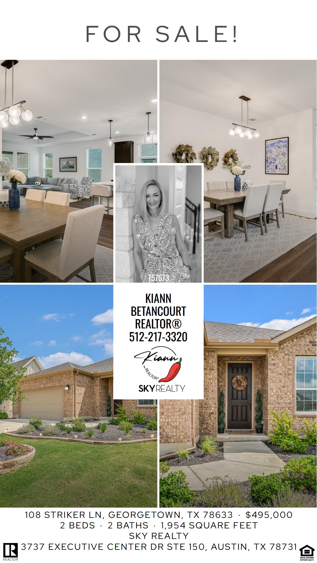 Come see this BETTER THAN NEW, meticulously maintained 2/2 plus office MAINSTAY PLAN. Upgraded kitchen features quartz countertops, a backsplash, pendant lighting, soft-close cabinets, a walk-in pantry, and a large island. Enjoy 9-foot ceilings throughout. The primary bath offers a spa-like shower with tile to the ceiling, rain and hand shower heads, dual vanities with quartz counters, and a spacious walk-in closet. The laundry is conveniently located near the owner’s suite. Step outside to a covered patio and professionally landscaped yard with wrought-iron fencing and stone borders. Potted plants and Eternity Eave lights on the front will convey with the home. Sun City Texas is an active adult community offering golf, fitness centers, pools, trails, and 50+ clubs. Call 512-217-3320 for a private showing.