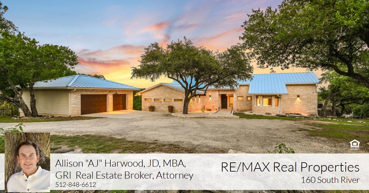 Additional highlights include a detached two-car garage, private well, rainwater collection system, chicken coop, and access to the exclusive HOA Blanco River Park for swimming, kayaking, and fishing.
