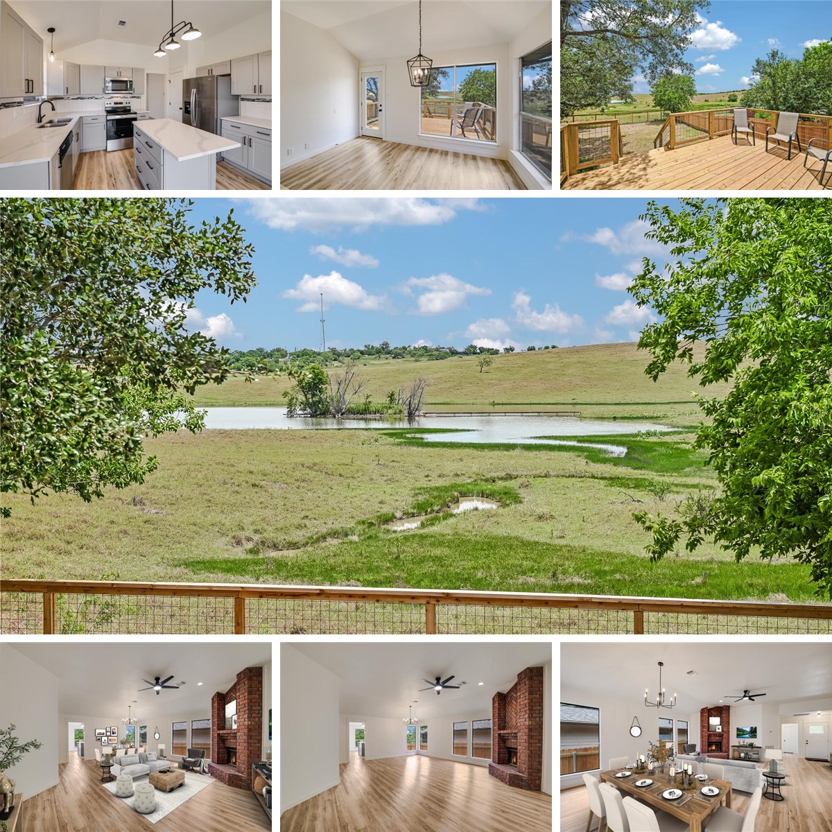 This impressive remodel, by Four Rivers Construction, awaits you as it's proud and loving new owner! Great location on a quiet street, in the back of the neighborhood, with no rear neighbors & fantastic views, from multiple rooms, of rolling pastures & a lake. Relax, unwind & soak in the views from the deck or under the shade of the large Live Oak. The main suite has 472+- sqft of space to include: the spacious Mbr, a study or flex space with the views, walk-in closet & the main bath with quartz counters, double vanities, separate shower & tub, tile surrounds & many other special touches. NO CARPET. Solid surface LVP flooring offers easy maintenance & a hypoallergenic environment! New cabinets, fixtures & hardware throughout. Ceiling fans & lights are controlled by switches or remotes & the lights have a cool feature of 3 color tone options! The kitchen features quartz counters, island with breakfast ledge, breakfast area, pantry, stainless steel appliances & refrigerator. NO HOA! Recent city improvements to streets addressed drainage concerns with curbs, sidewalks, gutters, partial driveways and an overlay, finishing, project is planned for the streets in the near future. Exterior remodel aspects include, but are not limited to: finishing driveway to the garage, back yard fencing, replacement of some siding, caulk & paint, solar screens, foundation skim coat, sod placement & the deck. Repairs fall of 2024 included: New dimensional shingle roof, main drain plumbing under house & foundation repair with transferable lifetime warranty. Neighborhood has a playground, street lights and other improvements mentioned above. This one has easy access to I-35 &/or other options for commuters using the new Loop 110 & access to Hwy 123 & Hwy 80. Close to river access, parks, the outlet mall, shopping needs, restaurants, downtown & everything San Marcos has to offer.