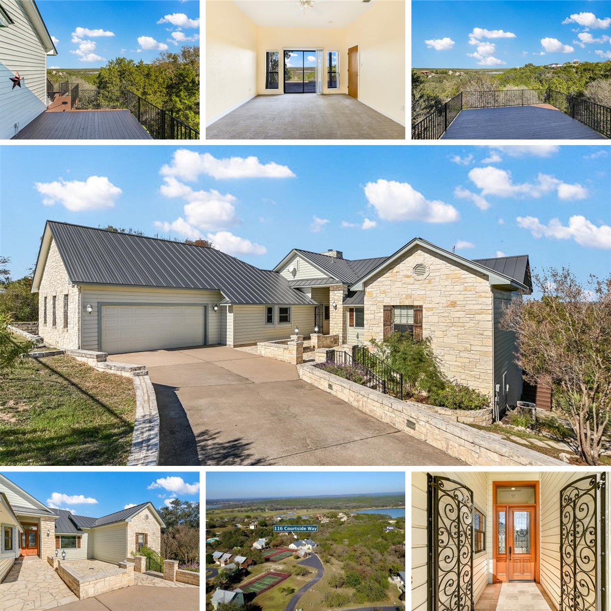 Long-range views of Lake Travis and the Texas Hill Country headline this spacious 3-bedroom, 3-bath home on nearly 2 acres in the gated Ridge Harbor community. The property sits on an elevated setting with a greenbelt-style backdrop, offering a level of privacy that stands out for this area.
