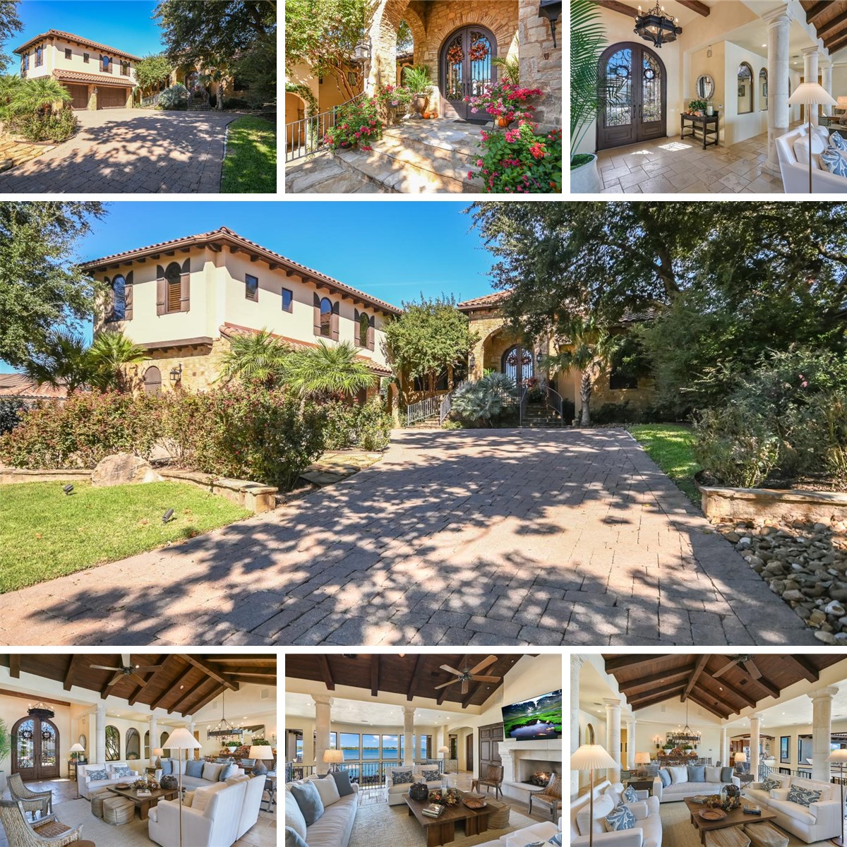 120 Applehead Island Dr. presents a striking Mediterranean-inspired estate with panoramic open-water views and an effortless, elevated lakefront lifestyle. Arched passageways, stone columns, and hand-hewn wood beams showcase timeless architecture that extends warmth and character throughout the home. Inside, the main living spaces unfold in a dramatic, multi-level design where light and water take center stage. Here, the living room, dining area, kitchen, and lounge are seamlessly connected, providing an open setting for gathering and entertaining. The island kitchen flows naturally into the living and multiple dining areas, creating an environment equally suited for intimate evenings or larger celebrations. The main-level primary suite offers a private retreat with patio access, his and her closets, and spacious bath while the impressive game room creates a natural extension of the home’s central gathering spaces. Guest suites, bunk accommodations, a media room, and two dedicated offices provide flexibility for hosting across generations. Outdoors, the experience deepens as terraces and covered patios extend toward the water, where a resort-style pool, cascading waterfall, and spa overlook Lake LBJ. Evenings settle in beside the outdoor fireplace on the covered patio, while days begin just steps away at the private boat slip, offering immediate access to the constant-level waters of Lake LBJ. Within the gates of one of Horseshoe Bay’s most exclusive waterfront communities, 120 Applehead Island Dr. is more than a home - It is a place to gather and return to for years to come.