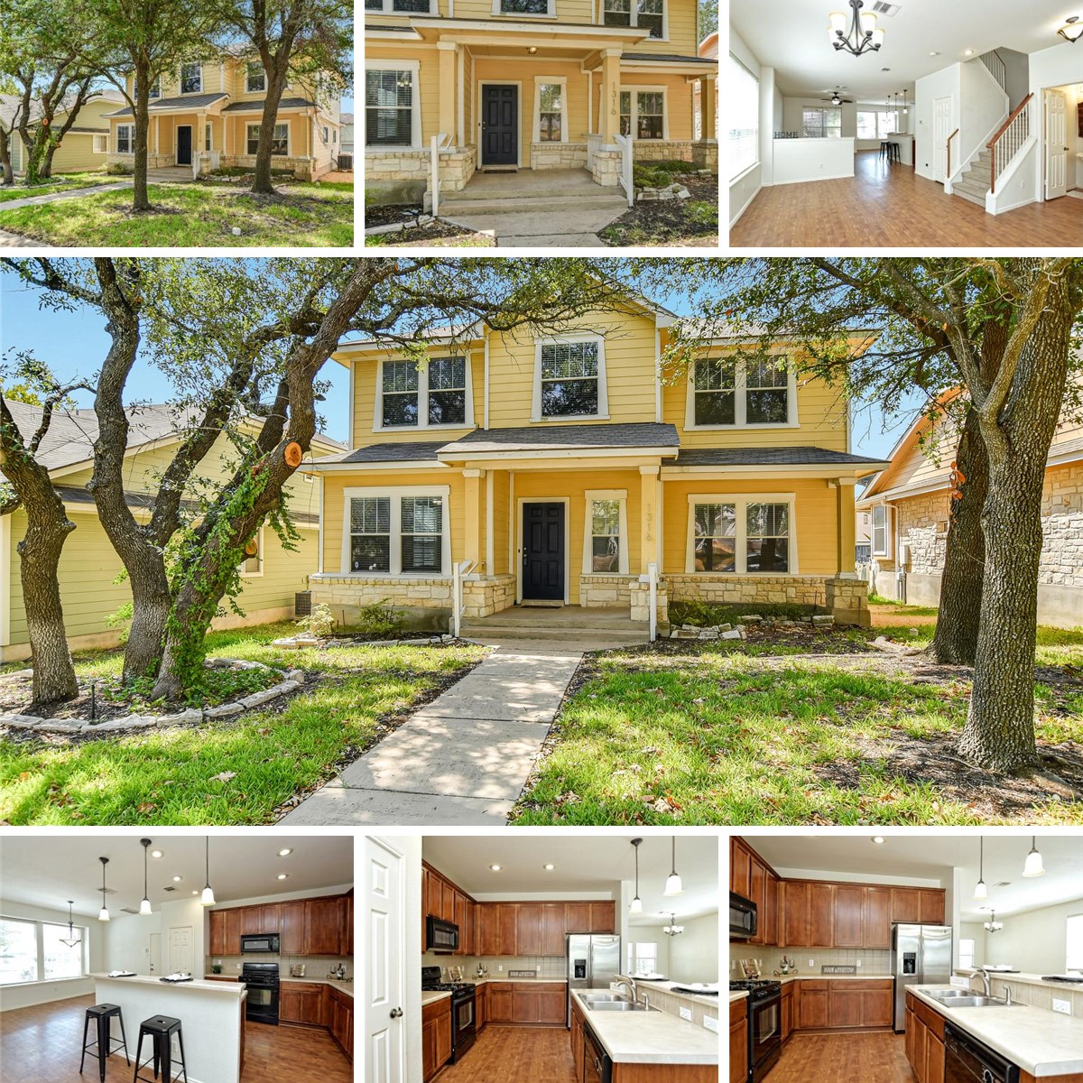 This cheerful home in the desirable Forest Oaks Neighborhood in Cedar Park has wonderful natural light throughout and beautiful landscaping with mature trees. You’ll love the Texas Style Front Porch and curb appeal. Extensive hard-surface flooring throughout. Main Level Open floorplan, the possibilities are endless- Family room flows into the Kitchen, perfect for entertaining! The Kitchen has plenty of counter and cabinet space as well as a pantry. The Breakfast Bar with pendant lighting has room for Bar Stools. Gas Range, Built in Microwave and Stainless-Steel Refrigerator is included. Enjoy views of the cute backyard from the breakfast nook and don’t miss the downstairs powder room. The upper Level features a wrought iron stairwell leading to the Game Room with enough space for a sectional to watch the Big Game and movie night and a nook perfect for an informal Desk/Office area. Enter through French Doors to the Primary Bedroom with Wood Look Flooring, a ceiling fan, and a wonderful bathroom with a dual vanity, soaking tub, separate walk-in shower, and walk-in closet. 2 additional bedrooms upstairs feature ceiling fans and nice sized closets. 2nd Full Bathroom with Bath/Shower combo and vanity with extra counter and cabinet space. Dedicated Laundry room is on the upper level- washer & dryer included. Attached Tandem Garage fits 2 vehicles and features windows, a storage/workbench area and ceiling storage racks. Adorable Backyard is ideal with a covered patio, privacy shade, extended patio, beautiful landscaping with flowers and green grass- Sprinkler system! Half a mile from the amazing Pool and Pavilion at the Community Center.