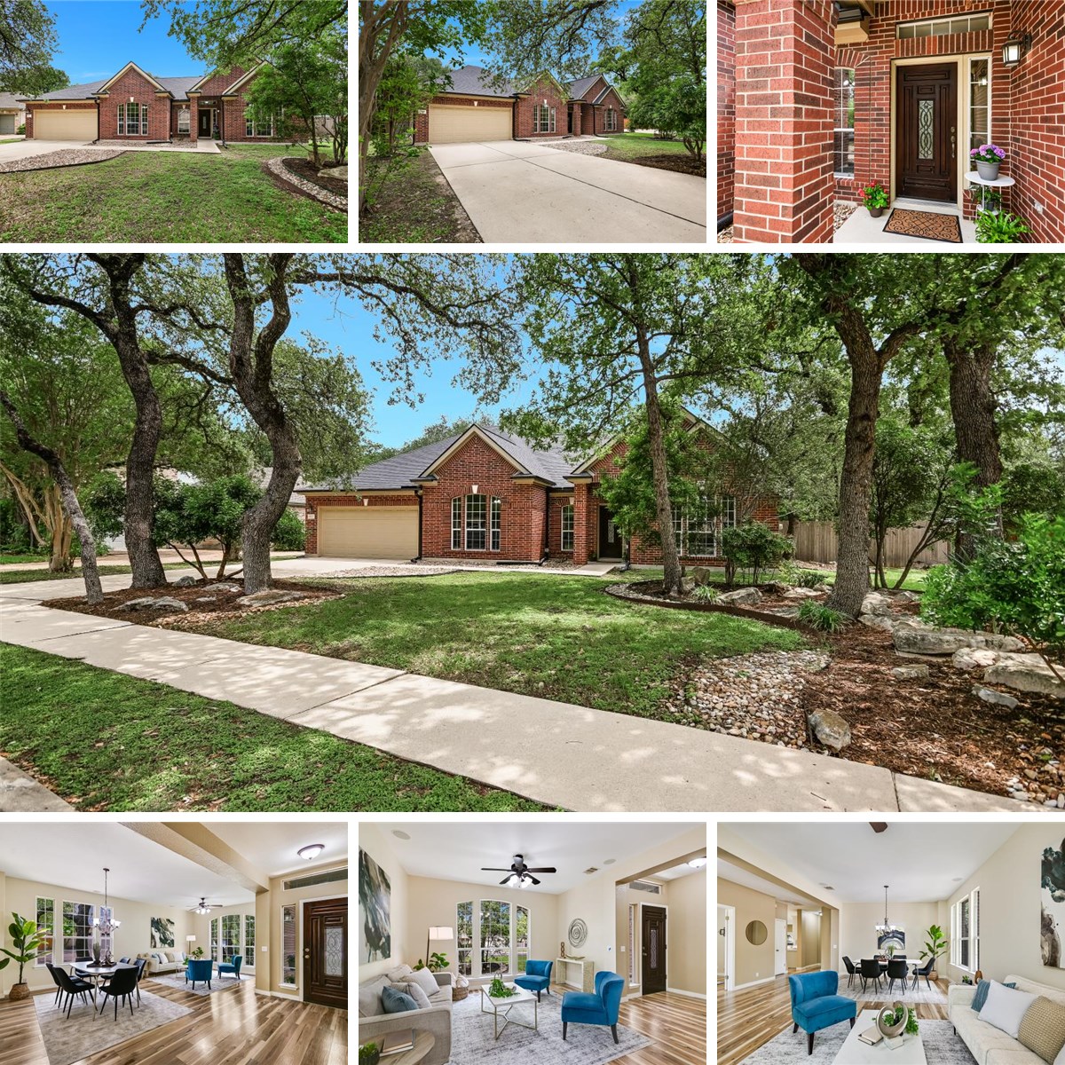 Welcome to this beautifully maintained home in the sought-after Domaine at Cat Hollow, set on a spacious lot shaded by mature oak trees. The flexible MIL floorplan offers 4 bedrooms plus a dedicated study, along with two living and two dining areas—giving you plenty of space to live, work, and entertain. High ceilings and an open layout create a bright, inviting feel, while the kitchen flows seamlessly into the main living area with a cozy fireplace. Updates over the years include Roof shingle replacement, Flooring in living areas & kitchen, modern lighting, HVAC for added comfort and style. The large primary suite offers a private retreat, and the backyard provides a peaceful, tree-lined setting with great privacy. With strong curb appeal and a prime Round Rock location, this home truly checks all the boxes. Refrigerator, stacked washer/dryer to convey.