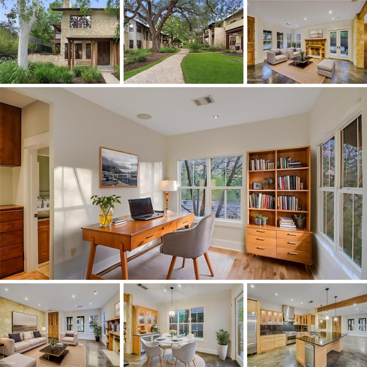 Incredible value in the Kinney Mues community, great price per sqft and new roof June 2025! One of just 16 exclusive homes, offering a rare blend of architectural elegance and modern convenience. Designed by urban visionary Sinclair Black, this is the largest residence in the community with 3 bedrooms and 3.5 bathrooms, boasting timeless details such as stone walls, architectural accents, antique doors, stained concrete and wood flooring. The open concept floor plan includes a large living room featuring an elegant fireplace and dining area with built-in wine and beverage refrigerators. The chef’s kitchen is a culinary dream, featuring granite countertops, a 36” commercial range, a farmhouse sink, a built-in refrigerator, a warming drawer, an ice maker and a large butlers pantry and laundry room. Natural light floods the space, while double French doors open to two private patio areas, creating a seamless indoor-outdoor living experience. Upstairs, the expansive primary suite impresses with beamed ceilings, a cozy fireplace, a private balcony, and a spa-like primary bathroom with a jetted tub, separate shower and built-in vanity. Two additional guest suites, each with ensuite bathrooms, provide comfort and privacy. Recently repainted throughout (March 2025) and with refinished American Cherry wood flooring (March 2025), this home exudes warmth and sophistication. A two-car garage features a large walk-in climate controlled storage room, completing this exceptional offering.