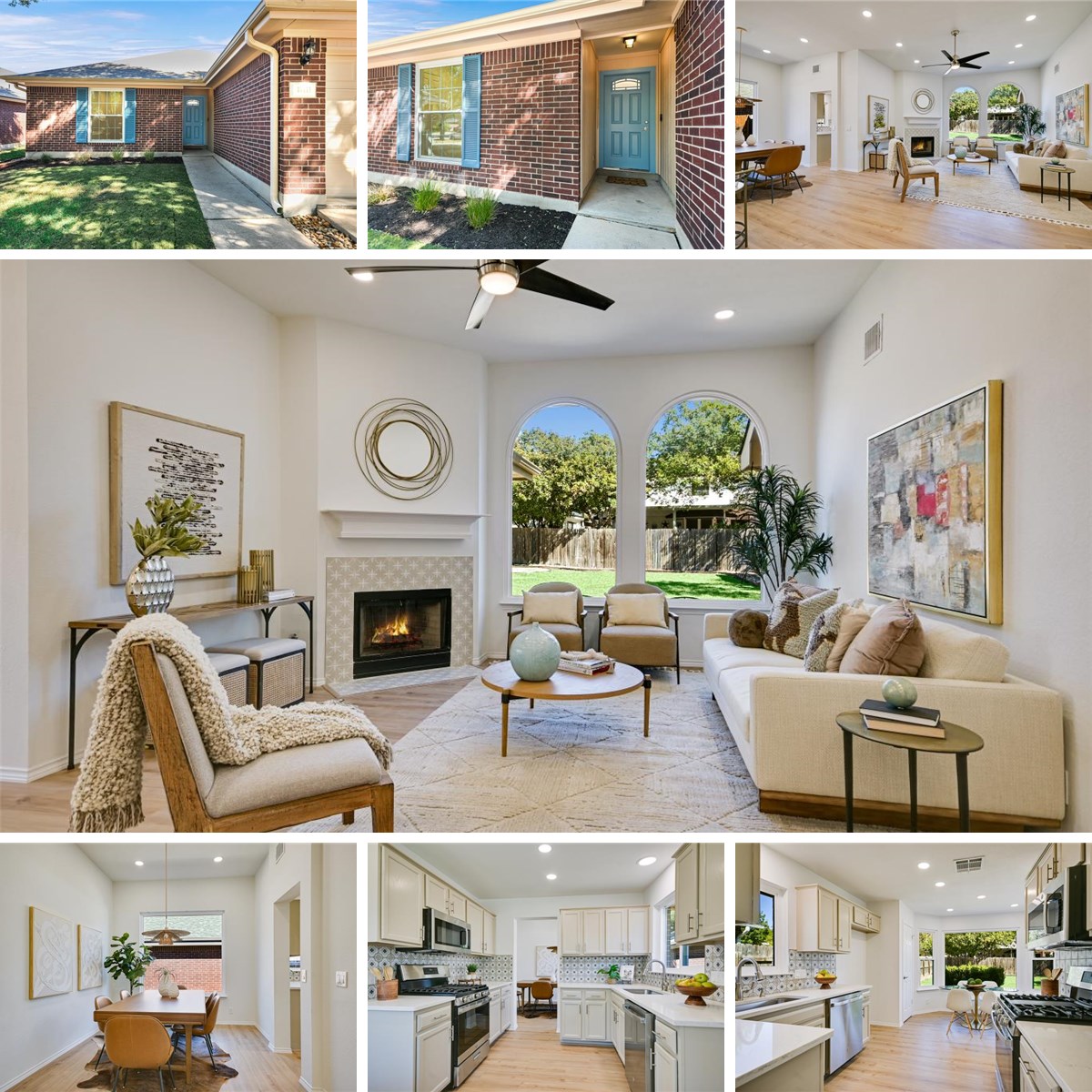 This beautifully refreshed 4-bedroom, 2-bath home (1,929 sqft) has been thoughtfully updated by an investor who takes pride in delivering a home he'd be proud to have his own family live in. Every finish, fixture and design choice was made with care — resulting in a space that feels stylish and welcoming. The home features 10-foot ceilings and is filled with natural light. The elegant arched windows in the living room make a striking architectural statement, while the large picture window in the dining area brightens the interior. Fresh paint throughout, luxury vinyl plank flooring and a designer-tiled fireplace complete the home’s timeless yet current aesthetic — ready for you to move in and enjoy. The kitchen offers separation from the main living area (ideal for keeping messes out of sight or enjoying a quiet breakfast) yet feels inviting thanks to its charming bay window. The space has been updated with stainless-steel appliances, quartz countertops, a designer tile backsplash, on-trend taupe cabinetry, plus a storage pantry. The primary suite is a serene retreat featuring a remodeled ensuite bath with a large walk-in closet, designer tile, quartz countertops, dual vanity and a freestanding soaking tub for unwinding after a busy day. Located in the desirable Springbrook Centre neighborhood, residents enjoy access to a community pool, playground, sports court and picnic area. Families will appreciate proximity to top-rated schools including Caldwell Elementary and IDEA Round Rock Tech Campus. Commuting is a breeze with easy access to I-35, Toll 45, MoPac, and 130. Shopping, dining, major employers, and recreation are all just minutes away.