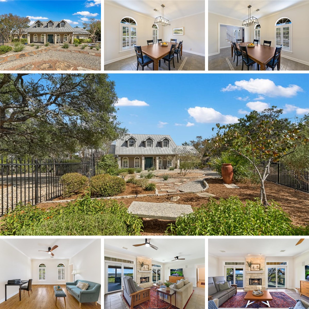 Nestled among the rolling hills of Wimberley, this beautiful home blends timeless Hill Country charm with sweeping long-range views that stretch across the valley. Surrounded by mature oak trees and natural landscaping, it offers privacy, peace, and that unmistakable sense of place that makes Wimberley so special. Step inside and you’ll find light-filled spaces designed to make the most of the scenery. The living room centers around a limestone fireplace and opens to a wall of windows overlooking the hilltops and sky beyond. The kitchen features crisp cabinetry, quartz counters, and a breakfast nook framed by stunning views - perfect for morning coffee or slow Sunday brunches. With two spacious primary suites plus additional bedrooms, the layout offers flexibility for mutli-generational living, weekend retreats, or hosting friends and family. Each bedroom feels like a retreat of its own, with large windows, natural light, and peaceful outlooks that connect you to the landscape. Outdoors, a covered deck runs the length of the home, offering a shaded space for dining al fresco. Above it, an uncovered second-story deck reveals even more dramatic views - perfect for stargazing, sunrise coffee, or watching the sunset glow across the hills. Below, winding garden paths and seating areas invite quiet moments surrounded by nature. Access to the Paradise Hills private River Park. Located just minutes from Wimberley’s town square, local wineries, and Blue Hole Regional Park, this home offers the perfect blend of country tranquility and small-town charm. Whether you’re looking for a full-time residence or a peaceful getaway, 20 Meridian Dr. delivers the magic of Hill Country living at its finest.