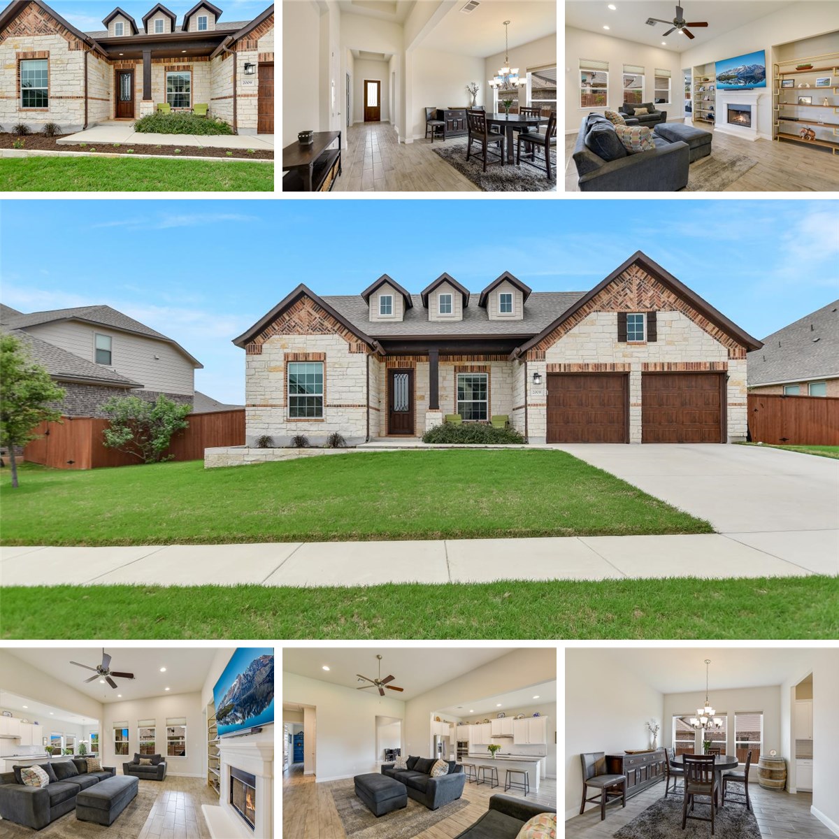 Outside, a massive covered patio overlooks a lush, fully irrigated yard with room to add a pool — ideal for weekend barbecues or quiet evenings under the stars. Practical touches abound: a tandem 3-car garage with overhead storage, two water heaters, a walk-in pantry, and a butler's pantry. The Oaks at San Gabriel wraps it all in a vibrant community with walking trails, a pool, fitness areas, and scenic river overlooks. With a brand-new HEB just minutes away and easy access to Cedar Park, Leander, Georgetown, and Liberty Hill — plus Liberty Hill school bus stops throughout the neighborhood — this is the kind of home families and empty-nesters alike rarely let go of.