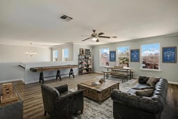 The primary suite is located on the main floor and includes a spacious bathroom with double vanities, a walk-in shower, and a huge walk in closet. Upstairs you’ll find additional bedrooms and a large game room providing flexible space for a media room, playroom, or home office.