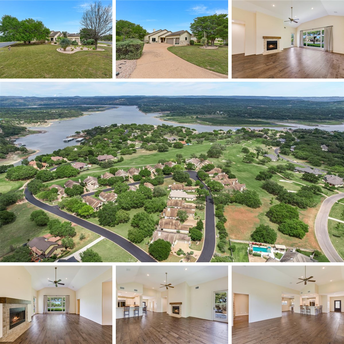 Fabulous single story garden home with no interior steps! Situated on a large landscaped corner lot with relaxing back and side patio areas. High ceilings throughout makes this home feel very spacious. Beautiful wood beamed ceiling in main living. Each bedroom has a full bath and hall bath serves as guest bath as well. Wonderful finishes such as beautiful, varied plank size hardwood floors, high ceilings throughout, stone fireplace in family room, separate study area/office/man cave/sewing room, or 4th guest room. Nice bar area with wine fridge off the kitchen and dining, great spacious kitchen with center island and lots of cabinet storage. Older SubZero refrigerator, that works great, cooktop stove, large walk-in pantry, spice rack, great laundry room with sink, washer and dryer, and a formal dining area and kitchen bar area that will fit at least 5 bar stools. Low maintenance concrete tile roof and a stone/stucco exterior. Situated on a huge corner lot with several patio areas. Breathtaking private country club community with 24 hr guarded/gated entry and club includes an 18 hole Arnold Palmer designed golf course, Olypmic size swimming pool, kiddie pool, lazy river with a hot tub, convenient dinning service, fitness center and tennis/pickleball courts. Membership is voluntary but very reasonably priced. Great lock and leave or primary home.