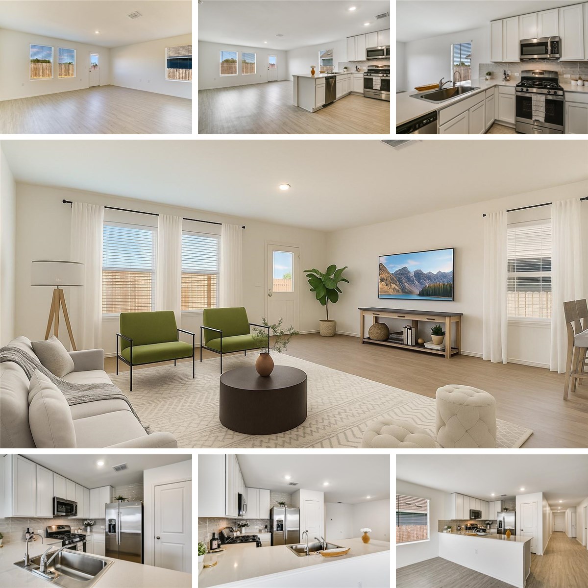 Step into almost-new living with this gorgeous 2024-built one-story home—bright, modern, and packed with upgrades! Enjoy an open-concept layout with 4 bedrooms and 2 full bathrooms, vinyl floors throughout the main areas, and soft carpet in the bedrooms. The stylish kitchen shines with stainless steel appliances, a brand-new subway tile backsplash added after photos, a drinking water filtration system, and a water softener. Refrigerator, washer, and dryer are included—truly move-in ready! Energy efficiency is a standout here: solar panels, double-pane windows, and new blinds help keep electric bills impressively low. The spacious living and dining areas flow beautifully together, creating the perfect setting for relaxing or entertaining. Outside, enjoy a flat backyard, automatic sprinkler system, and no direct back neighbors. The community also features a brand-new pool conveniently close to the home, offering a refreshing perk for residents. Location is another huge plus—this home offers easy access to both I-35 and Toll 130 and is very close to Samsung, making commuting and daily errands a breeze. A nearly new home loaded with comfort, upgrades, and modern style—ready for its next happy tenant!
