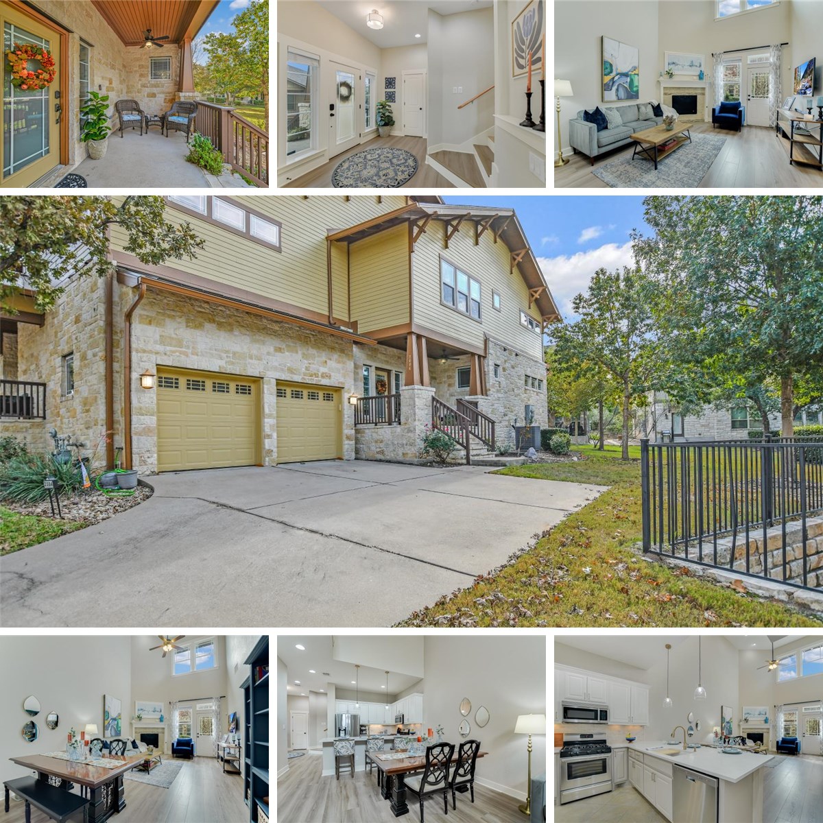 Welcome home to this beautifully appointed townhome-style condo offering the perfect blend of style, space, and low-maintenance living. The recently updated kitchen is a true standout, featuring sleek quartz countertops, a modern tile backsplash, stainless steel appliances, and a large eat-in breakfast bar—perfect for casual meals or entertaining guests. The kitchen flows seamlessly into the dining area and expansive family room, where soaring ceilings and wonderful natural light create a light, airy atmosphere! The main-level primary suite offers a private retreat, complete with designer wallpaper and a luxurious en-suite bath showcasing granite countertops, dual vanities, a spacious walk-in closet, a relaxing garden tub, and a separate shower. Upstairs, you’ll find a second primary suite along with an additional bedroom featuring its own en-suite bath. All four bedrooms include private baths, providing exceptional comfort and privacy for family members and guests alike. Easy-care luxury vinyl plank flooring enhances the kitchen, living, and dining areas, combining durability with modern appeal. An inviting front porch adds the perfect touch of charm and curb appeal—ideal for morning coffee or evening relaxation. This thoughtfully designed home offers the space you need and the finishes you want—all in a convenient townhome-style setting. Enjoy convenient location close to shopping, dining and Twin Creeks Country Club, excellent Leander ISD schools and miles of hiking/biking trails. The condo is a member of both Twin Creeks and Sunset Ridge HOAs. Twin Creeks HOA fees are $109/qtr.