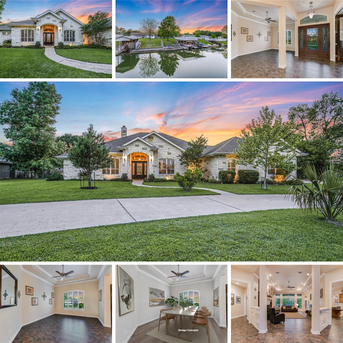 Incredible value on Lake LBJ! This custom-built home rests on a rare double lot with 150’ of waterfront and offers exceptional quality, thoughtful design, and timeless finishes. Located on a wide, quiet channel just seconds from open water, the home welcomes guests with a circle drive, an oversized driveway, and a side-entry garage—ideal for both curb appeal and entertaining. Inside, enjoy 10’ ceilings, crown molding, and a smart split floor plan with 3 bedrooms, 3.5 baths, and a dedicated office. Designed for accessibility and comfort, it features wide doorways, a roll-in primary shower, sliding kitchen cabinets, and a low-mounted microwave. The great room flows seamlessly into the formal dining space and a spacious kitchen complete with island seating, bar, and a sunny breakfast area. The lakeside primary suite includes a peaceful sitting area, water views, private patio access, and a luxurious bath with soaking tub, dual vanities, a walk-in shower with multiple spray heads, and a huge closet with built-ins. The two guest bedrooms are tucked on the opposite side of the house, sharing a full bath with patio access for rinsing off after lake fun. A powder room and oversized laundry room provide extra convenience. The lush backyard, irrigated by a lake pump, slopes to the water where two boathouses with sundecks sit on opposite sides of the property. Enjoy lake living from your extended covered porch—perfect for outdoor dining or relaxing in the shade with friends and family.