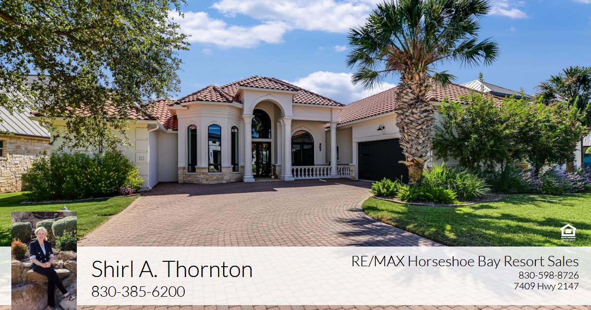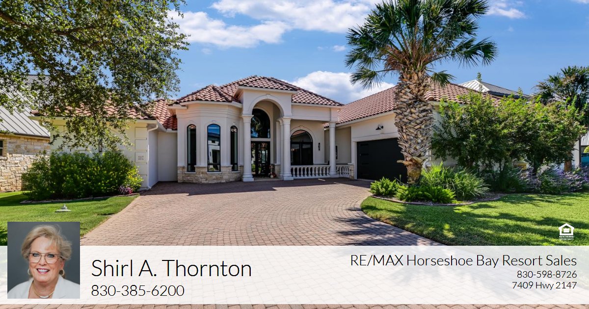Welcome to 307 Wennmohs Place - a single-level Lake LBJ waterfront retreat. Perfectly positioned on prime open-water in Horseshoe Bay West, this stunning residence blends timeless architecture with resort-inspired living. The paver stone drive and soaring columns create an elegant first impression, leading to a grand arched entry that opens into light-filled living spaces. Inside, the great room showcases a stacked-stone fireplace wall, lofty ceilings, and walls of windows that frame the panoramic lake views. The island kitchen features custom cabinetry, granite counters, a gas cooktop, Sub-Zero refrigerator, breakfast bar, and an adjacent dining area with panoramic lake views. A dedicated study provides the perfect work-from-home setting while a cozy sitting area encourages entertaining. The luxurious primary suite offers a cozy sunroom with private patio access, and a spa-inspired bath with dual vanities and generous storage and closet space. Two stylish guest suites ensure comfort for family and friends, both with convenient ensuite baths. Outdoor living takes center stage with a covered patio and lush lawn leading to the expansive lakeside deck, where a pergola-covered seating area, a covered boat lift and one PWC lift create the ultimate setting for relaxation or hosting gatherings on the constant-level waters of Lake LBJ. Impeccably maintained and located just minutes from the Horseshoe Bay Resort, this home delivers the perfect balance of elegance, comfort, and Texas Hill Country waterfront living.