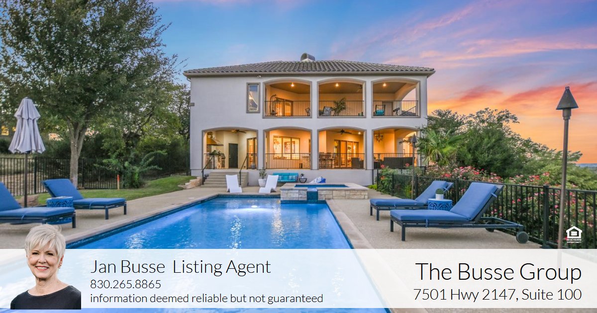 With vistas of Lake LBJ, HSB Bay West, and Escondido, this nearly 1 acre retreat spans Hideaway to Sweetgrass. The entry’s barrel-vaulted ceiling leads to the living and dining areas where a wet bar and large fireplace offer easy entertaining. The dining room showcases a tray ceiling, and French doors open to the patio. Adjoining the living and dining rooms, the kitchen is functional and stylish with a pull-up bar and seated breakfast area. Stained wood cabinetry, gleaming black granite counters, and stainless-steel appliances give the kitchen a modern edge. A large pantry provides ample storage, and a hidden, locked, conditioned wine cellar offers a luxurious touch. The main floor primary bedroom boasts hardwood floors and sweeping lake and Hill Country views. The en suite bath is lavish, with a jetted tub, large shower, and walk-in closet. A study is tucked between the primary bedroom and living room, perfect for quiet evenings, and a half bath is ideal for guests. Upstairs, a loft leads to two additional bedrooms, each with their own en-suite bath. A small bunkroom offers flexible use as extra storage or additional sleeping space. From the upstairs balcony patio, enjoy panoramic views: a sanctuary both inside and out. Downstairs, the first-floor patio is equipped with an outdoor kitchen, dining area, and lounging space. Step down to the large, heated pool. Surrounded by lush landscaping and enclosed by a wrought iron fence, the outdoors offer a perfect setting of privacy, relaxation, and entertaining.
