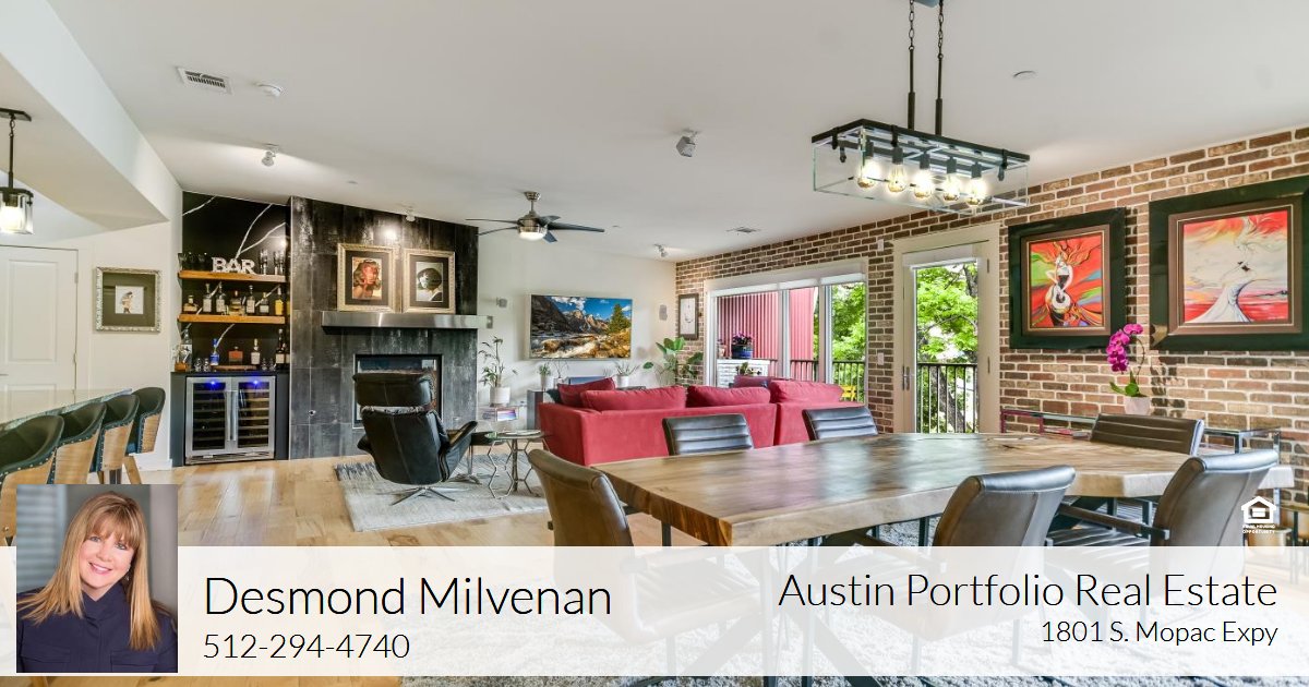 MOTIVATED SELLER! This Texas-size condo has over 1,600 square feet on one level with one bedroom, one and a half bath, and a flex space, perfect for an office or reading nook (there is space for a Murphy bed). This third-floor unit is located in a boutique 16-owner building with a pool. Designed with a vision of climate responsiveness and the use of natural light by award-winning Barley Pfeiffer Architects. Enjoy your morning coffee on the east-facing terrace. This centrally located condo is in the Heritage Neighborhood near restaurants, Central Market, & the medical epicenter near 34th & N. Lamar. Located on the 3rd floor (top) in the elevator building, can be a lock and leave or a full-time resident. This unit does not share any walls with other units, & there are only 6 units on the third floor. The entire space has a ton of natural light with large portrait windows, an enormous island that is so big it should have its own zip code, & the open floor plan is an entertainer's dream. The loft vibe showcases a gas fireplace with a stainless steel mantle, exposed brick in the living & bedroom, wide plank engineered wood flooring, plenty of storage, & four space-saving pocket doors. Recent updates include a custom bar with a quartz slab, floating shelves, & a wine fridge. The primary bedroom has recent carpet, fresh paint, & a custom-designed closet that provides plenty of storage with self-closing drawers & plenty of hanging space, storage on top, & it comes with a spinning shoe rack that also has a full-length mirror & belt hooks. There is gallery lighting and updated light fixtures throughout, the AC was replaced in 2021 & comes with one assigned parking spot in the gated garage. There are shades on all the windows, & the unit has pre-wiring for power drapes. All appliances convey, including the wine fridge, & speakers for surround sound. HOA is $675 a month. Includes trash, recycling, exterior building insurance, pool and lawn care, elevator service, & gate maintenance. Also open to lease. Call to inquire.
