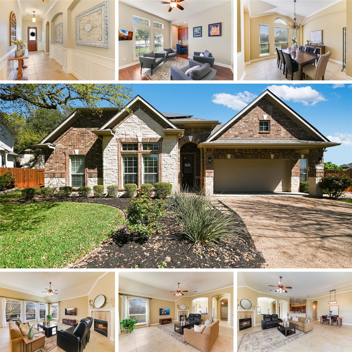 Amazing opportunity in the highly sought-after Behrens Ranch community of West Round Rock! Ideally situated on a quiet cul-de-sac lot with a side yard bordering the neighborhood greenbelt. The home is in excellent condition, with recent updates including HVAC (2023), gas water heater (2024), and roof shingles and gutters (Sept. 2024). Additional upgrades include a whole-house instant hot water loop and water softener. The functional floor plan offers 4 bedrooms, 2.5 baths, and a dedicated study/media room. Interior custom details include high ceilings, crown molding, elegant archways, and tile and wood laminate flooring. The bright, open living room is anchored by a gas log fireplace, and a wall of windows fills the space with natural light. The kitchen includes abundant cabinetry, a built-in oven and microwave, and a natural gas cooktop. A breakfast nook, formal dining, and bar-height seating, offers several eating areas and is ideal for entertaining. The primary suite features tall ceilings, great natural light, and a walk-in closet. The primary bath has dual vanities, soaking tub, separate shower, and an additional walk-in closet. A spacious laundry room includes a sink, room for a refrigerator, and extra storage. The private backyard is a real retreat, with mature trees, lush landscaping, full irrigation, an expansive covered patio, and an outdoor kitchen with a built-in gas grill, warming burners and sink. Relax and enjoy the Bullfrog R7 hot tub with jets, lighting, and water feature! Conveniently located just 2 miles west of I-35 with easy access to major roadways, and only 25–30 minutes to downtown Austin. Zoned to highly rated Round Rock ISD schools, including Cactus Ranch Elementary (located within the neighborhood), Walsh Middle School, and Round Rock High School. Behrens Ranch offers a true neighborhood feel with an active HOA and community amenities including a pool, tennis and pickleball courts, playgrounds, and trails connecting to Brushy Creek.