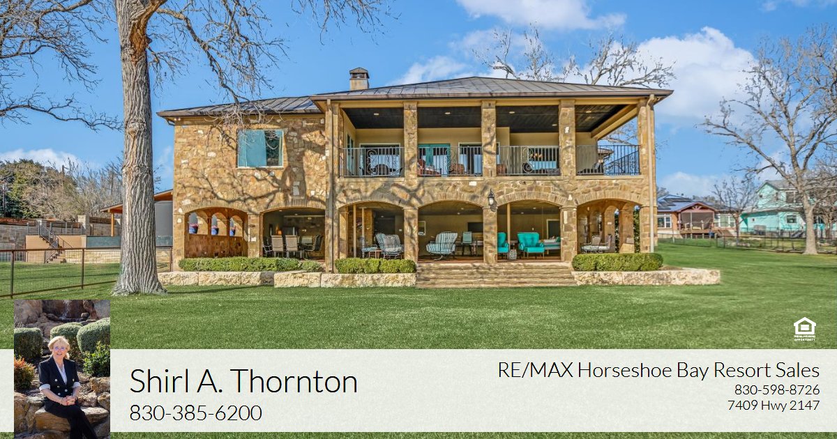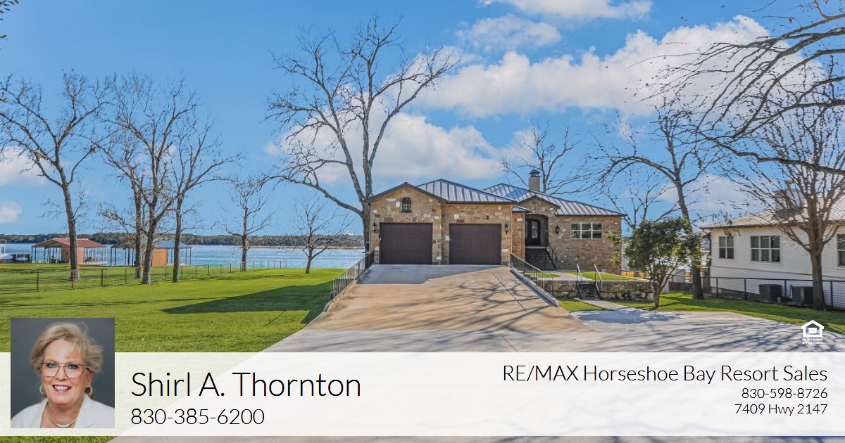 Positioned on two expansive waterfront lots along the constant-level waters of Lake LBJ, 360 Campa Pajama Ln. offers 140 feet of shoreline and sweeping southwest-facing views across the main body of the lake. Built in 2018 with 3-bedrooms, 3.5-baths plus a dedicated study, this 3,295 sq. ft. residence blends comfortable lake living with exceptional indoor and outdoor entertaining spaces. Inside, the open-concept living area features soaring ceilings anchored by a wood-burning fireplace, while expansive windows frame the spectacular lake views and fill the space with natural light. The island kitchen is designed for both function and gathering, offering a large island, convenient butler’s pantry for prep and storage, and a Bosch appliance package including a gas cooktop. Each bedroom features its own ensuite bath, while the study offers a built-in Murphy bed, providing flexible guest accommodations. The spacious primary suite connects to a spa-like bath with double vanity, soaking tub, walk-in shower, and generous closet space. The home’s appeal extends effortlessly to its outdoor living areas. A large covered patio off the main living area provides front-row seats to colorful Hill Country sunsets, while the lower level offers extensive covered outdoor living and storage space including an outdoor kitchen, wood-burning fireplace, powder bath, outdoor shower, and flex room with mini split. A lush, flat lawn extends from the home to the water’s edge, creating an easy connection to the covered two-stall boat dock with lifts and a unique diving board. A gated entry and detached storage building provide secure space for boats, lake toys, and equipment.