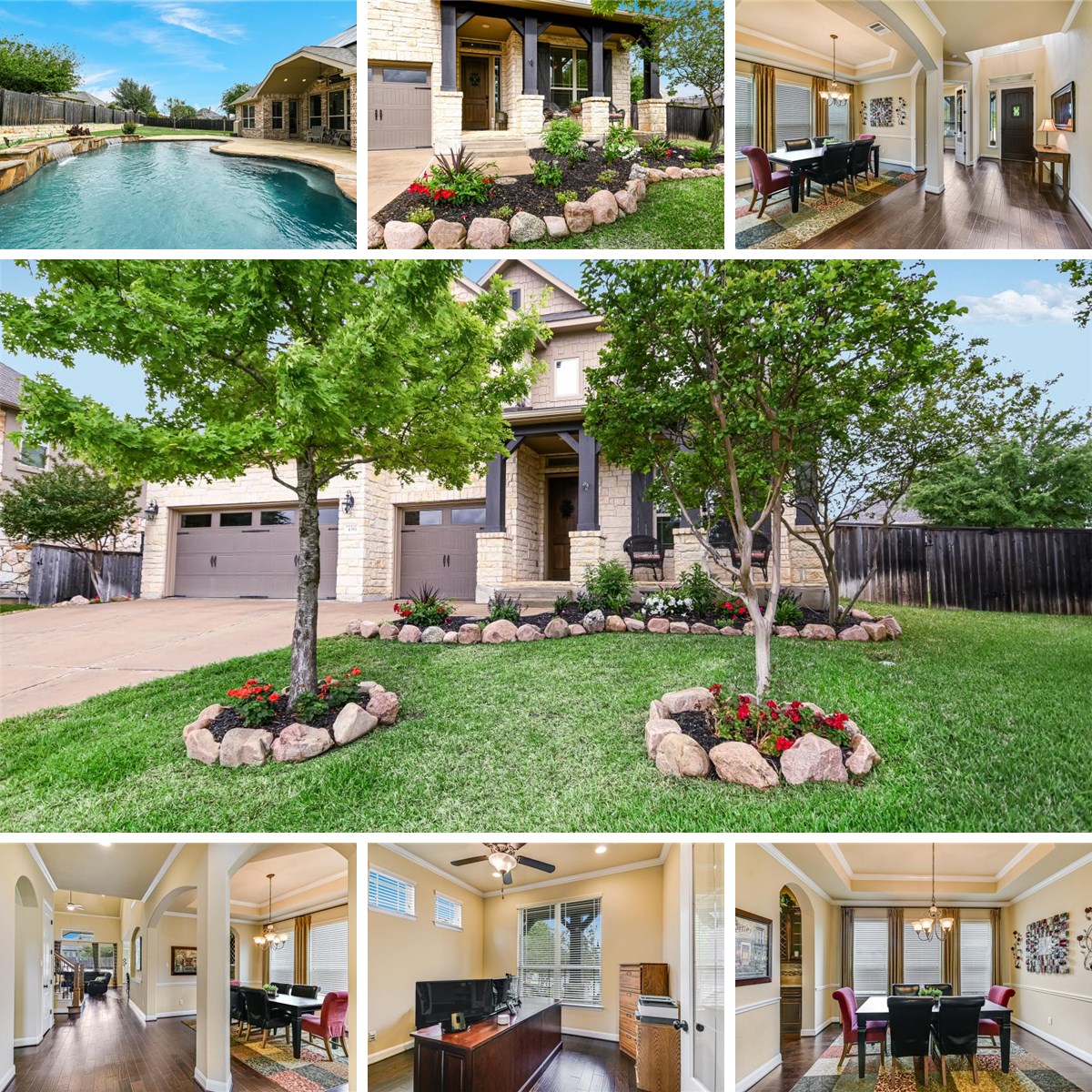 The primary suite is a true retreat - the spa-like bathroom offers a serene escape, designed for both relaxation and luxury. A secondary bedroom and full bath on the main level provide flexibility for guests or multi-generational living. Upstairs, you’ll find a generous game room, a dedicated media room, and three additional bedrooms, including a convenient Jack-and-Jill bath.
