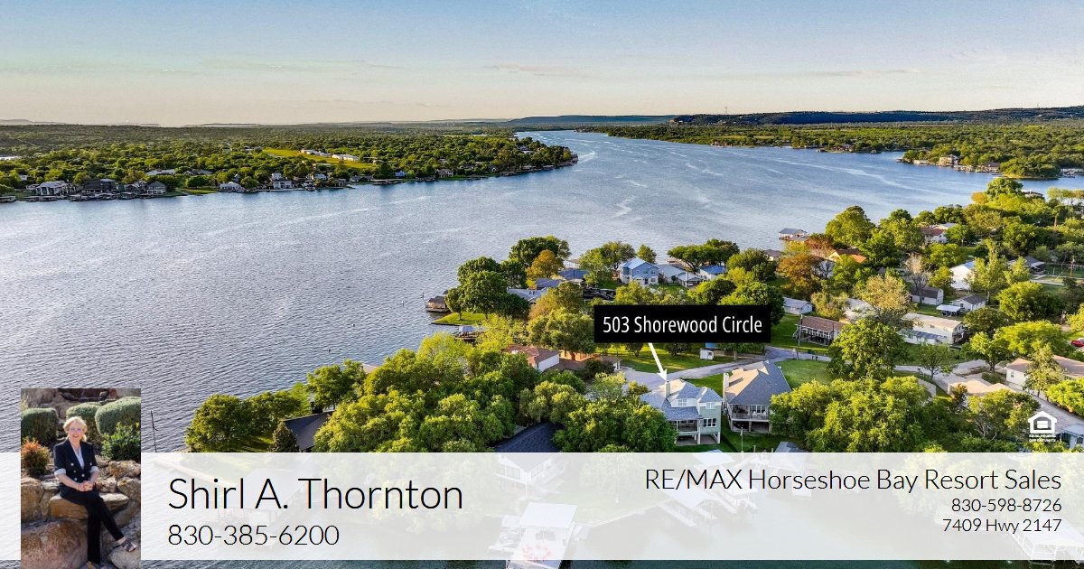 Set along a quiet no-wake cove with 79’ of constant-level Lake LBJ waterfront, 503 Shorewood Circle offers a relaxed approach to waterfront living designed for gathering, unwinding, and making the most of time at the lake. Southeast-facing views bring in soft morning light, while calm water creates the perfect setting for swimming, paddleboarding, and easy days that stretch into the evening. At 2,103 sq. ft., the home features a comfortable, functional layout with a main-level primary suite and two upstairs guest suites—both boasting incredible lake views. The living area is anchored by a wood-burning fireplace and framed by expansive windows, while the open kitchen includes granite countertops, custom cabinetry and stainless steel appliances including double convection ovens. The adjacent dining area offers space for large family gatherings or dine al fresco on the main level covered patio. Outdoor living takes center stage with an expansive covered patio, and a flat, level lawn leading to the shoreline. A firepit invites evenings by the water, while the metal and concrete boathouse includes a boat lift, two PWC docks, storage room, and upper-level deck with both covered and full sun spaces. Additional highlights include an insulated garage and generous storage throughout. As Granite Shoals allows short-term rentals, 503 Shorewood Circle offers flexibility as a full-time home, weekend retreat, or investment property. Call today to schedule a showing.
