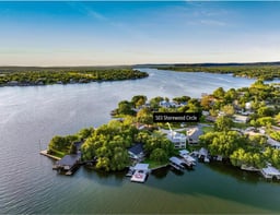 Set along a quiet no-wake cove with 79’ of constant-level Lake LBJ waterfront, 503 Shorewood Circle offers a relaxed approach to waterfront living designed for gathering, unwinding, and making the most of time at the lake. Southeast-facing views bring in soft morning light, while calm water creates the perfect setting for swimming, paddleboarding, and easy days that stretch into the evening. At 2,103 sq. ft., the home features a comfortable, functional layout with a main-level primary suite and two upstairs guest suites—both boasting incredible lake views. The living area is anchored by a wood-burning fireplace and framed by expansive windows, while the open kitchen includes granite countertops, custom cabinetry and stainless steel appliances including double convection ovens. The adjacent dining area offers space for large family gatherings or dine al fresco on the main level covered patio. Outdoor living takes center stage with an expansive covered patio, and a flat, level lawn leading to the shoreline. A firepit invites evenings by the water, while the metal and concrete boathouse includes a boat lift, two PWC docks, storage room, and upper-level deck with both covered and full sun spaces. Additional highlights include an insulated garage and generous storage throughout. As Granite Shoals allows short-term rentals, 503 Shorewood Circle offers flexibility as a full-time home, weekend retreat, or investment property. Call today to schedule a showing.