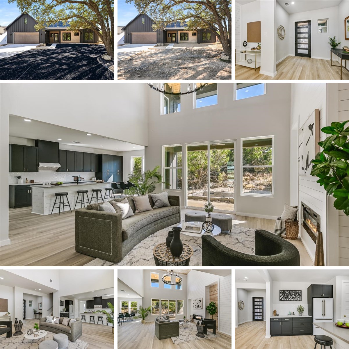 Discover luxurious living at 52 War Bonnet, a brand-new construction nestled in the heart of Wimberley, Texas. This exquisite modern Hill Country residence offers a harmonious blend of contemporary design and natural beauty. Showcasing architectural mastery, the home features a striking modern design with clean lines and an open-concept floor plan, ideal for both everyday living and elegant entertaining. Immerse yourself in relaxation with a resort-style private pool, providing a serene oasis for leisure and entertainment. The expansive living spaces are thoughtfully designed, offering ample room for comfort and functionality. Expansive windows throughout the home flood each room with natural light, enhancing the sophisticated finishes and craftsmanship. Set in an idyllic location, the property is surrounded by peaceful trees, creating a tranquil retreat. This exceptional home is situated in a prime location, offering the perfect balance of tranquility and convenience. Schedule a private viewing today and experience the unparalleled beauty and elegance of this modern Hill Country gem.
