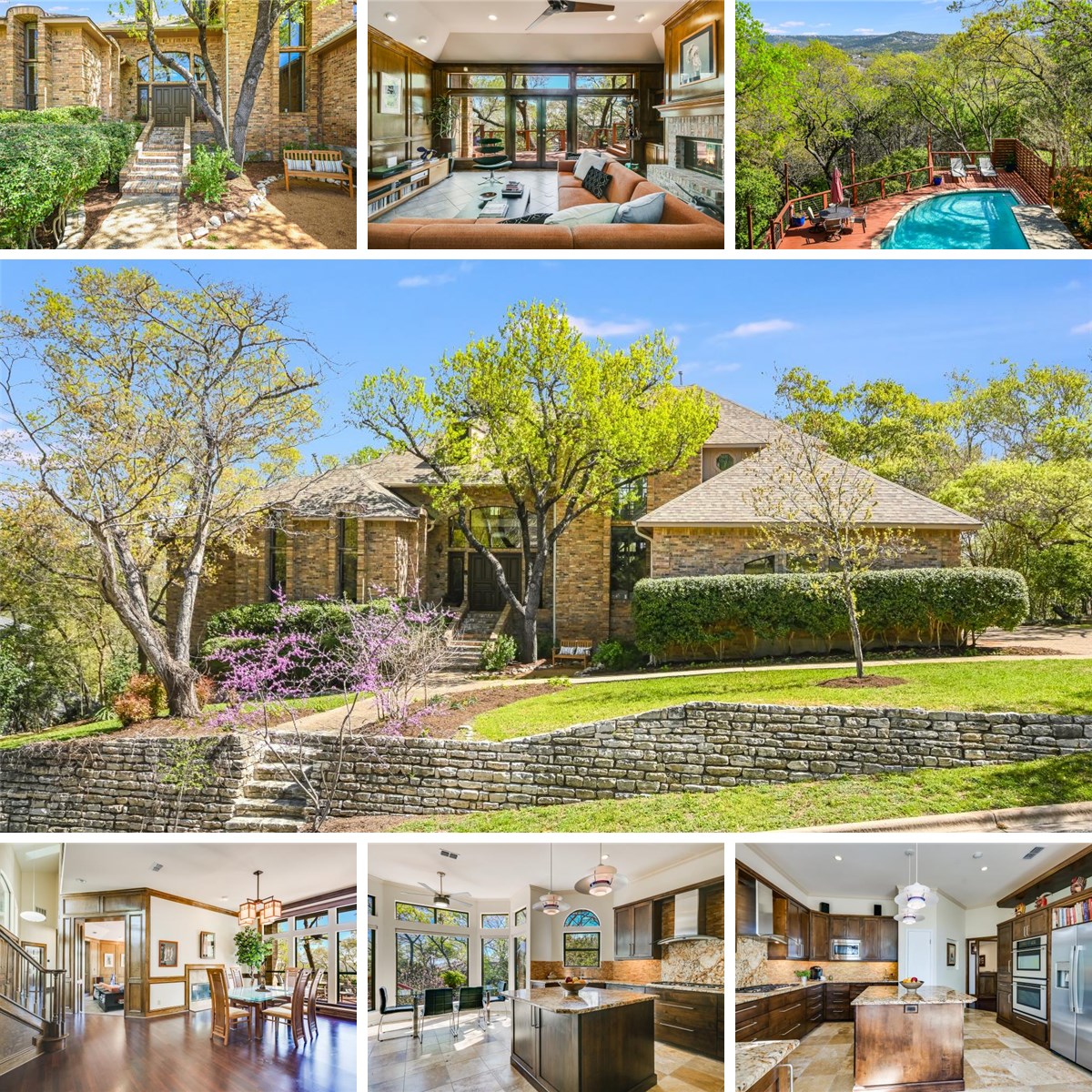 This quintessential Davenport Ranch home boasts spacious rooms, lots of privacy, and incorporates natural beauty throughout. When you enter, you’re greeted by the incredible distant views, wooded privacy, and flexible plan. The main level unfolds with intentional flow — from the updated kitchen/breakfast area to the comfortable, yet refined, dining room, continuing to the inviting, timeless living area. The private office/TV room (with surround sound) can flex as an exercise room or guest room. Nearby is the main bedroom, with a modern, full-corner window, private deck access, and a bright bathroom with heated floors. Most rooms in the house experience the lovely distant views, pool, and canopy of amazing trees. The upper level is thoughtfully laid out with two large bedrooms (each can fit two beds) — one with an en suite bathroom — and an open game/study/reading area with a fireplace and custom bookshelves. Tucked into the lower level is a fantastic flex space with a private entrance and private bath — ideal for an office, exercise room, guest room, or full-time bedroom. The large main-level and upper-level decks offer several places to dine, relax, and enjoy the natural surroundings and views. They both face NE, away from the afternoon sun, and overlook the beautiful pool and running stream water feature (with Koi pond), offering soothing sounds 24/7. Updates in the last 10 years include the primary bath w/heated floor, bar w/beverage fridge, wood flooring, roof, and HVAC. More recent updates include exterior paint, interior paint, carpeting, and bathroom tile. Enjoy secluded living in the middle of a thriving, distinguished Eanes ISD/Westlake neighborhood, and still be just one mile from Austin Country Club and the Davenport Village Shopping Center and 20 minutes to downtown Austin. HOA benefits include a private, gated neighborhood park.