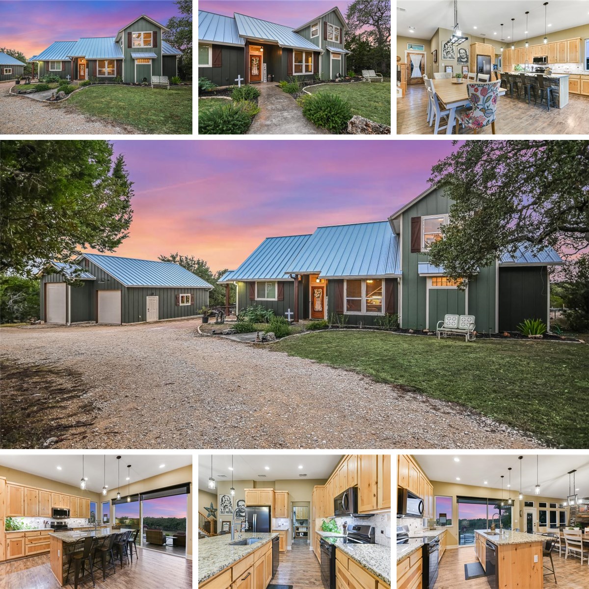 Experience sweeping Hill Country views from this picturesque 5.5-acre property ideally positioned between San Marcos and Wimberley—offering the best of both worlds. Enjoy the convenience of nearby big-box shopping, dining, medical facilities, and major retailers in San Marcos, while being just minutes from the charming, hallmark-style town of Wimberley, known for its iconic town square, boutique shops, local restaurants, and small-town warmth. This beautifully updated 4-bedroom, 3.5-bath home features 2,403 sq ft of thoughtfully designed living space with an open floor plan and a spacious island kitchen with granite countertops. The inviting living room offers a cozy fireplace and expansive windows capturing stunning Hill Country vistas. The main-level owner’s suite includes a walk-in shower and dual vanity. Two additional bedrooms share a convenient Jack-and-Jill bath, while an upstairs bedroom with a full bath provides perfect flex space, guest accommodations, or a private in-law retreat. Extensive 2024–2025 upgrades add incredible value, including: • New standing seam metal roof (2025) • New exterior “modern” paint colors (2025) • Freshly stained exterior trim & shutters with warranty (2025) • New landscaping (2025) • New downstairs HVAC—inside & out (2025) • New above-ground hard-sided pool with warranty (2024) Relax on the back patio overlooking your acreage, enjoy sunset views, or take advantage of the detached garage with RV parking. With unmatched privacy, recent updates, and a premier location between city conveniences and timeless Hill Country charm, this property truly has it all!