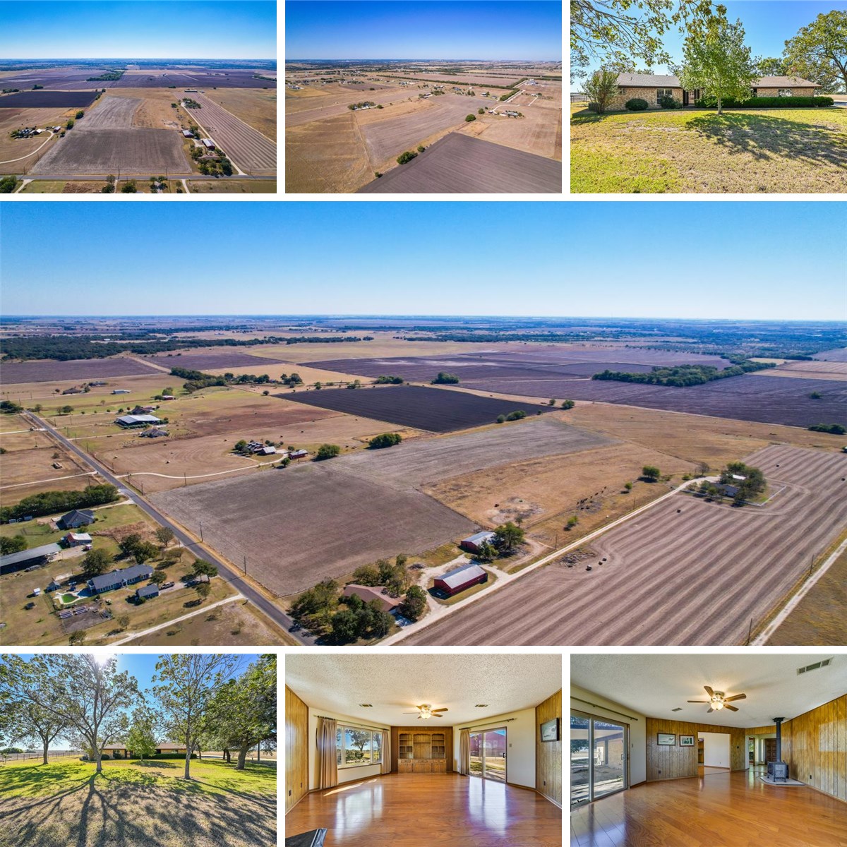 The property features a 3-bedroom, 2-bath home surrounded by mature trees, and is ready for some modern touches. The two large barns are equipped with electricity and water: one ideal for a workshop, extra garage, or equipment storage, and the other suited for additional storage, hobbies, or livestock and farm animals. The beautiful acreage offers multiple potential homesites with serene views perfect for custom building. Conveniently cross-fenced, previous uses included farmland with row crops and cattle operations. Utilities include well water, electricity provided by Reliant, a septic system, an above-ground propane gas tank, and high-speed internet availability. A Jonah Water SUD line is also located at the street.